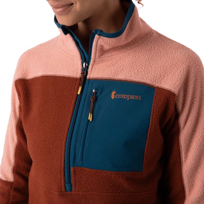 A solid-gold statement piece that embodies our commitments to sustainability and style, the Abrazo Half-Zip Fleece Jacket puts a Cotopaxi spin on the classic fleece pullover with fresh color patterns and recycled fabric. In addition to its half-zip design that allows for quick temperature control and easy on/off, this soft, cozy, and stylish fleece features front hand pockets and a stretchy, zippered chest pocket to stash your small must-haves.