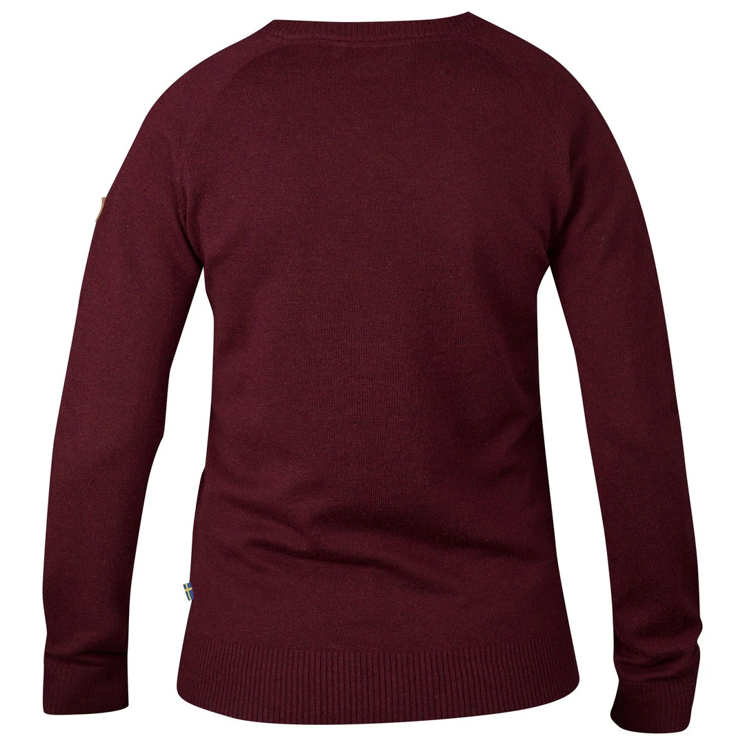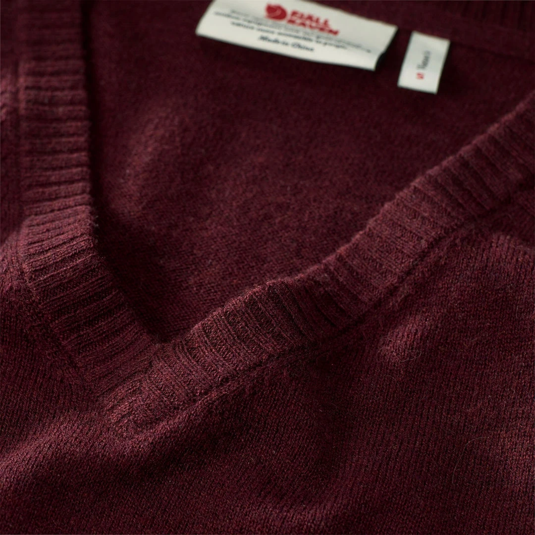 Light, soft finely-knitted sweater in Merino wool, a versatile garment that provides a lot of warmth in a convenient format. An excellent choice for long days in the forest, as the wool wicks away moisture and keeps its insulating properties even when damp. Its classic style also works well in more urban environments. The V-neck looks very stylish when worn over a shirt. Raglan sleeves and a fitting, feminine cut. Ribbed sleeve cuffs and hem.
