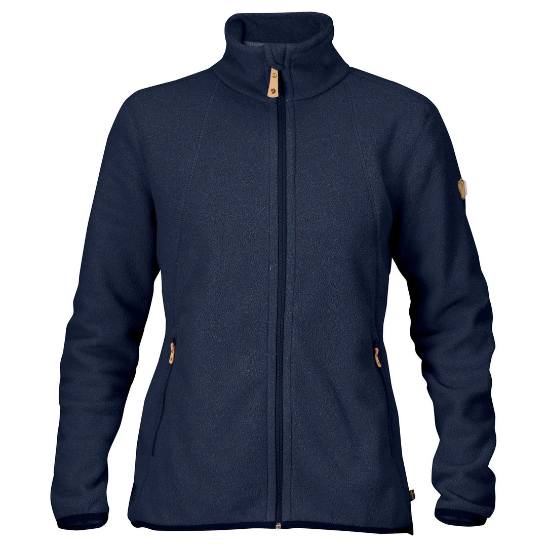 Comfortable and soft fleece sweater with comfort fit; made from recycled polyester with a slightly marbled look. As appropriate on a mountain hike as it is when worn as a warm middle layer under a shell jacket or by itself over a shirt as the dew falls on a nice summer evening. The fleece is manufactured in an environmentally friendly process that both spins and dyes the thread in the same step. For this model, that means about 50 percent less water and 31 percent less energy consumption compared to a traditionally produced fleece sweater. High collar protects you from biting winds, and there is a protective flap of fleece between the zipper and chin. Two spacious zippered side pockets. All of the zipper flaps are made from natural tone leather.