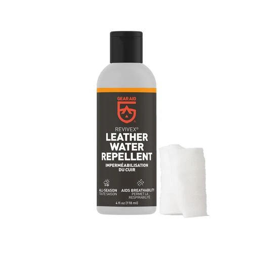 Revivex Leather Water Repellent is a leather conditioner and waterproofing gel in one. Over time, leather boots can dry and crack. Restore its looks and improve performance by applying this 2-in-1 formula regularly. The gel soaks into fabric to repel water and prevent staining all season long. This leather softener is also safe to use on breathable fabrics like GORE-TEX® lined footwear. For a simple solution to cracked leather and damp, cold feet, use Revivex Leather Water Repellent.