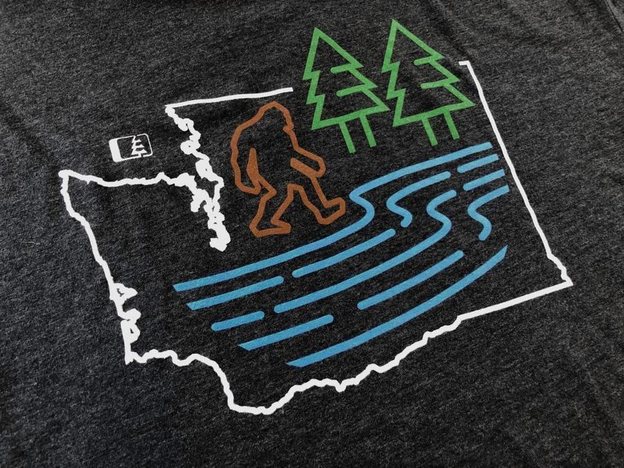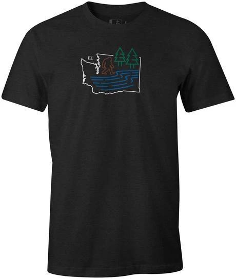 Bigfoot (is Bigfeet plural?) likes to stop for a drink and a bath too! So where can you find Bigfoot? Try by the pacific northwest rivers and lakes. Happy hunting. The ‘Bigfoot River’ tee printed on our soft and great fitting 60-40 blend premium shirt.