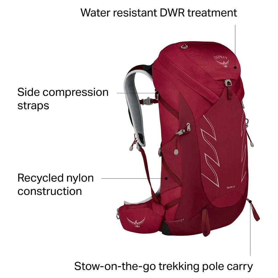 Osprey’s Talon 36 Backpack follows our every move throughout our peak-bagging summer. The ultralight, close-to-body fit doesn’t slow us down on the trail, while the breathable backpanel helps us thermoregulate. We know this pack will be our adventure companion for years with the durable recycled material withstanding the burliest of feats.