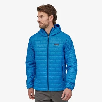 Rely on the Patagonia Men’s Nano Puff Hooded Insulated Jacket for warmth high in the alpine when you’re climbing or ski touring. Its Primaloft Gold Eco insulation adds the touch of warmth needed for active endeavors in cold places, and it’s so compressible the jacket stows inside its own pocket for compact convenience on your harness or in your pack. Patagonia treated the jacket’s tough, recycled ripstop shell to shed snowflakes and raindrops. The Nano’s hood fits under helmets with ease, and the adjustable hem stays secure under harnesses.