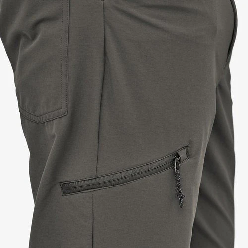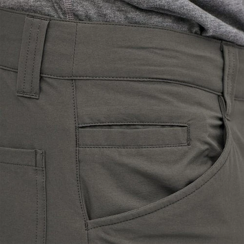 Handwarmer pockets, two rear pockets, one right coin pocket and one right-thigh zippered pocket